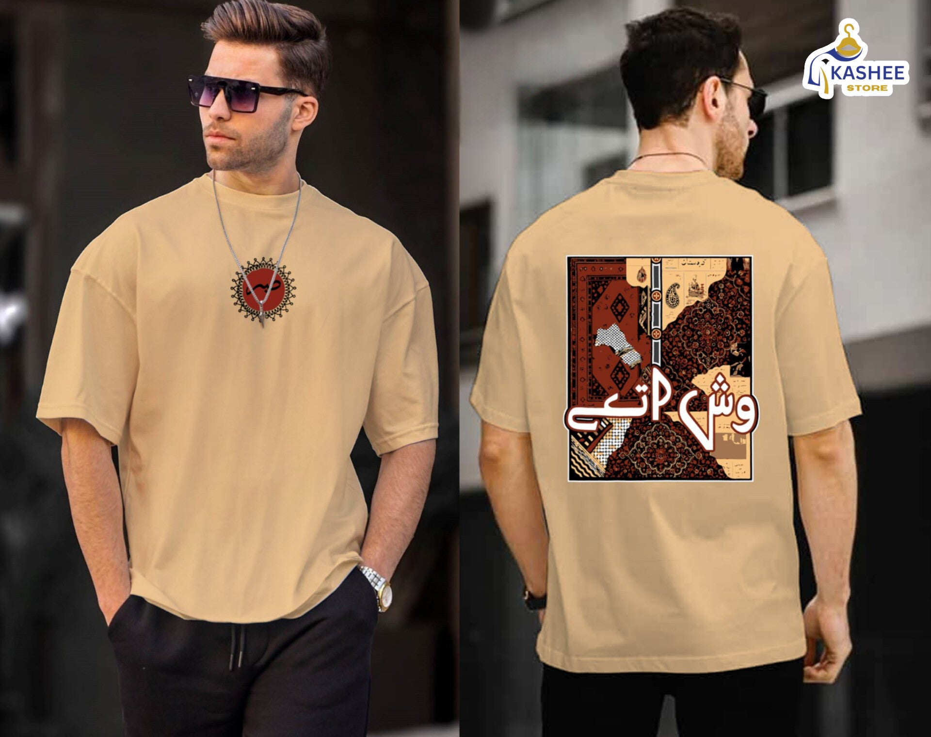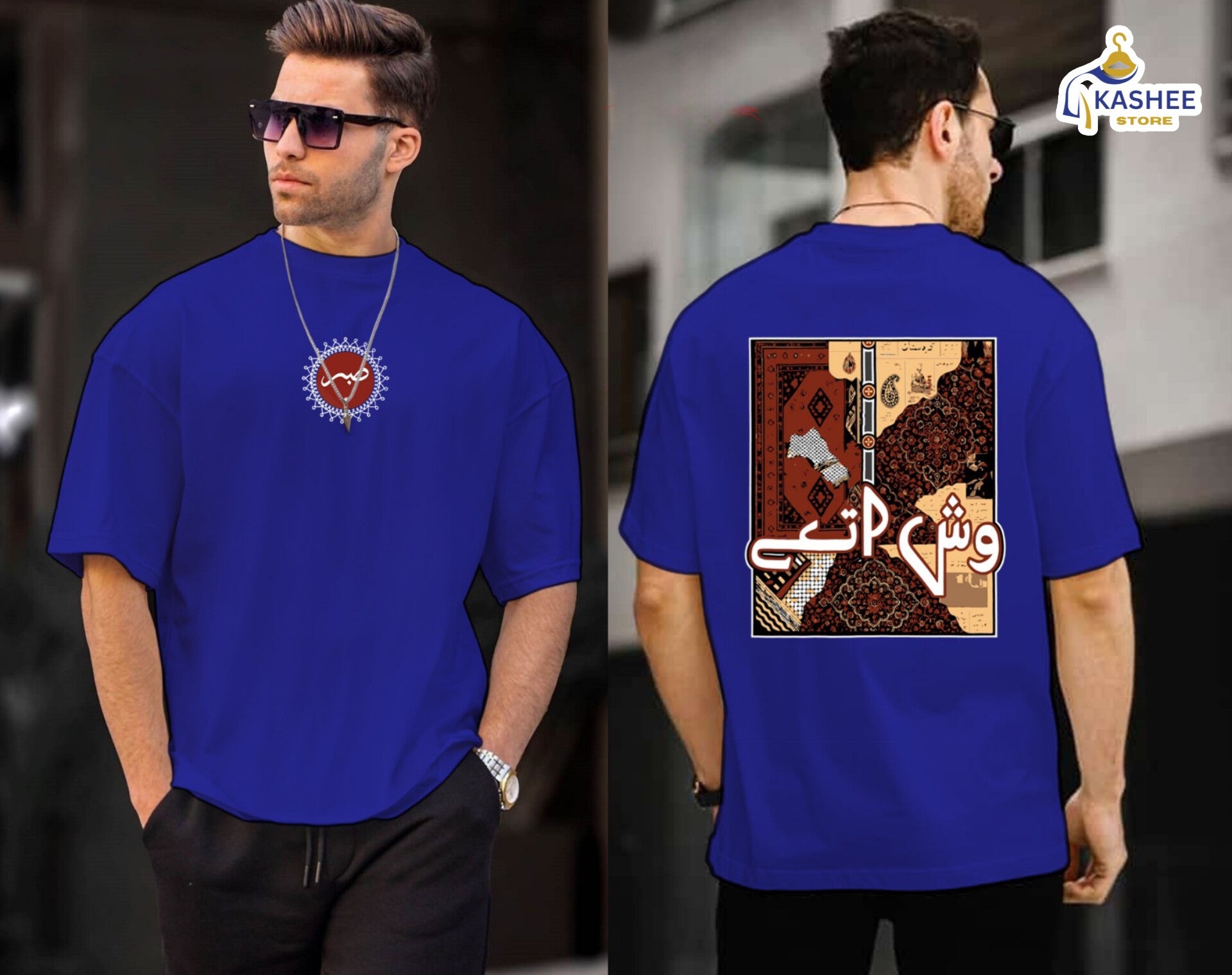 Its relaxed down-shoulder fit and unique Sindhi-inspired design bring a bold, cultural twist to everyday streetwear — perfect for casual outings or signature looks.